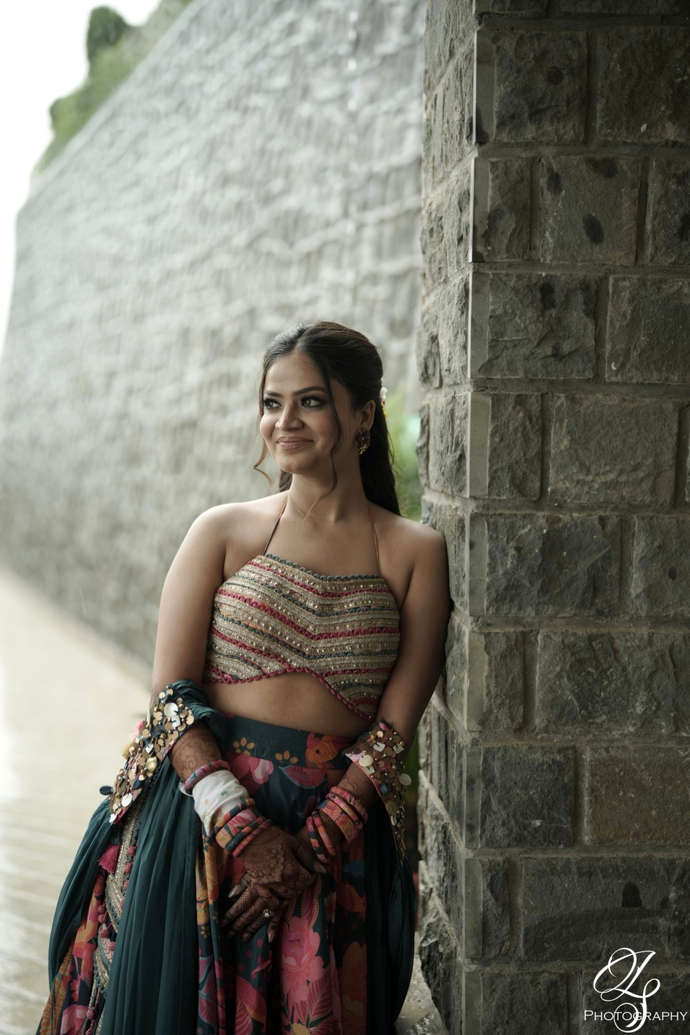 Ayushi & Anish in Boho Lehanga & Jade Emrald Set