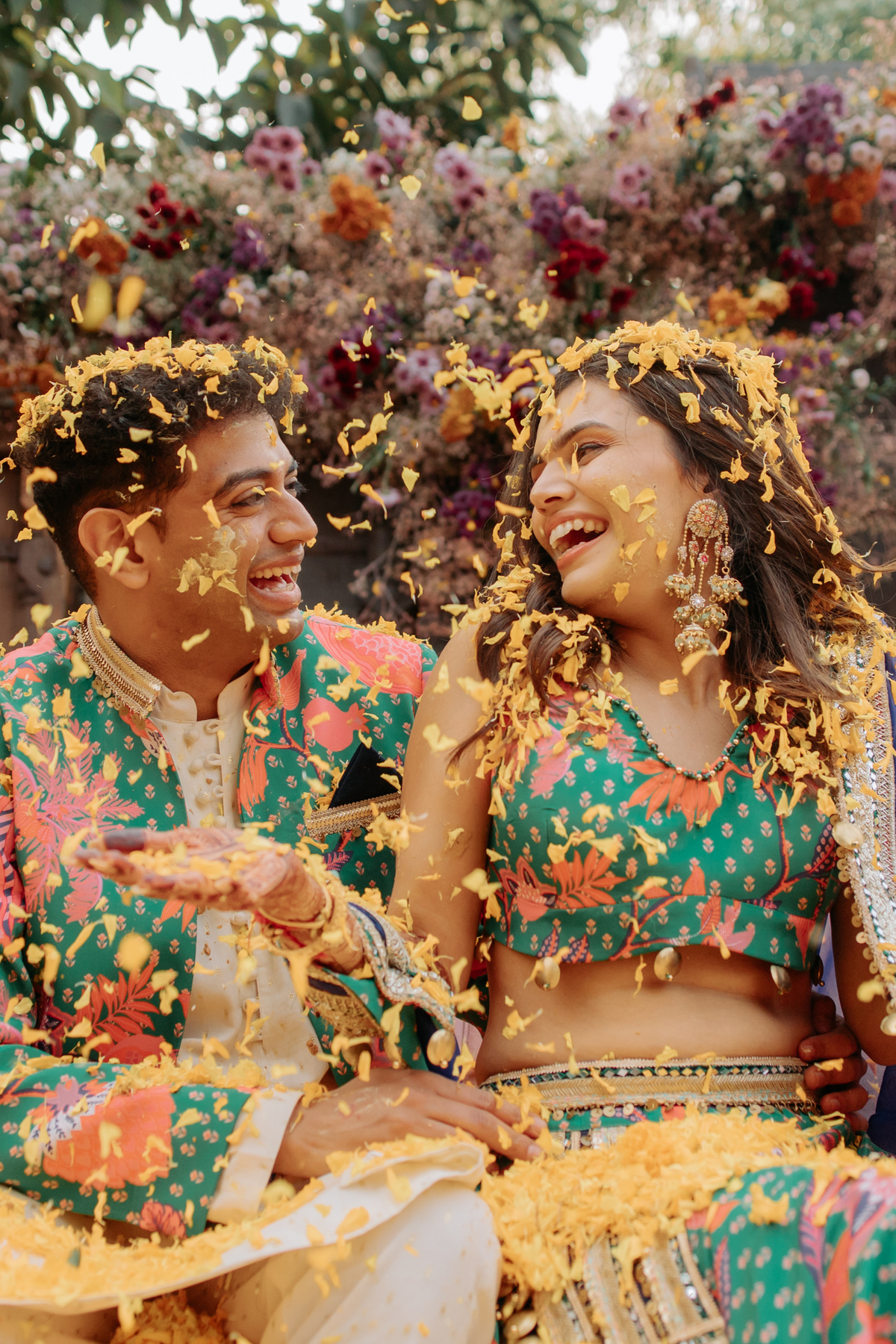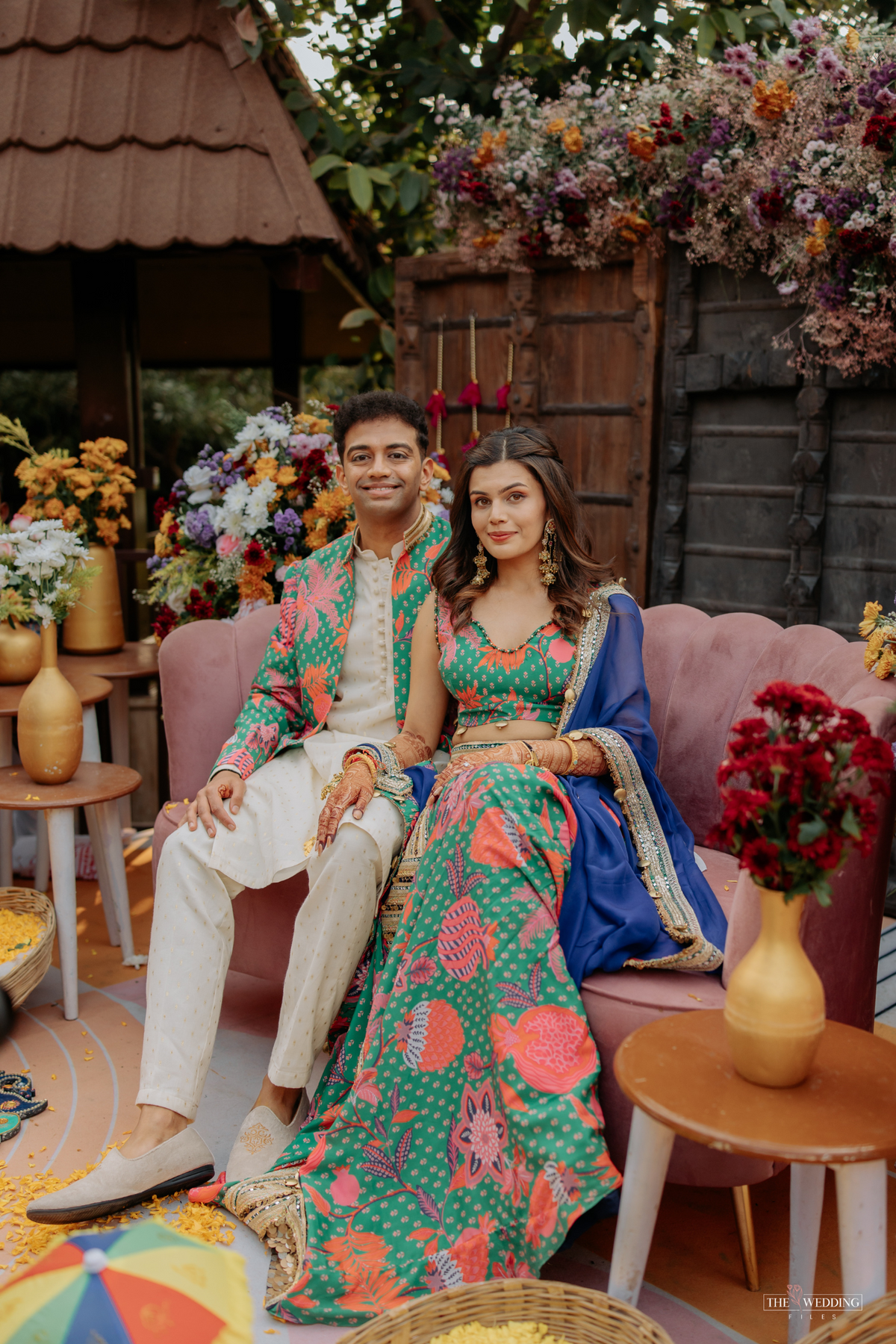 Ayushi & Anish in Boho Lehanga & Jade Emrald Set