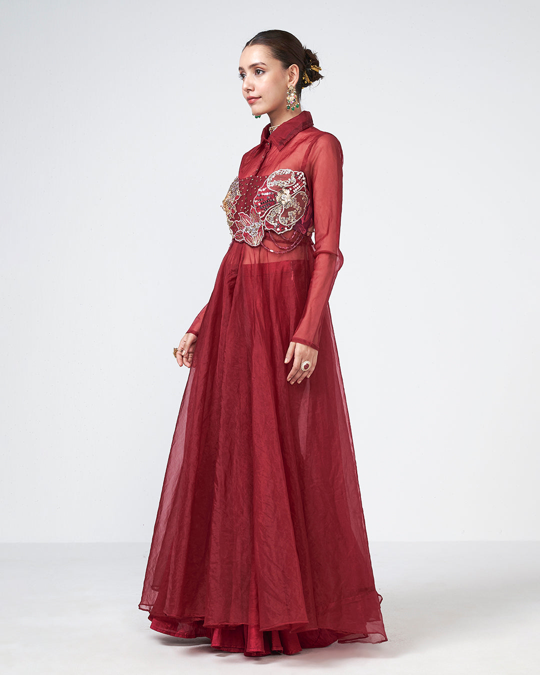All our garments are handcrafted and made-to-order, hence we do not accept returns or exchanges. Alterations can be arranged if needed; courier charges may apply.