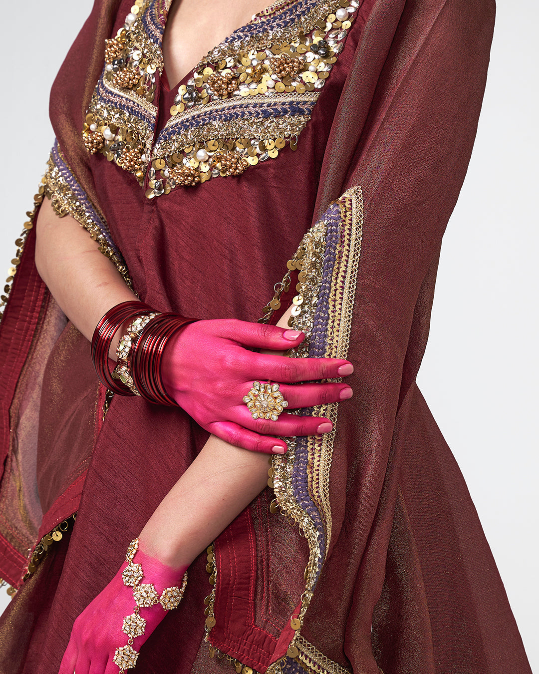 All our garments are handcrafted and made-to-order, hence we do not accept returns or exchanges. Alterations can be arranged if needed; courier charges may apply.