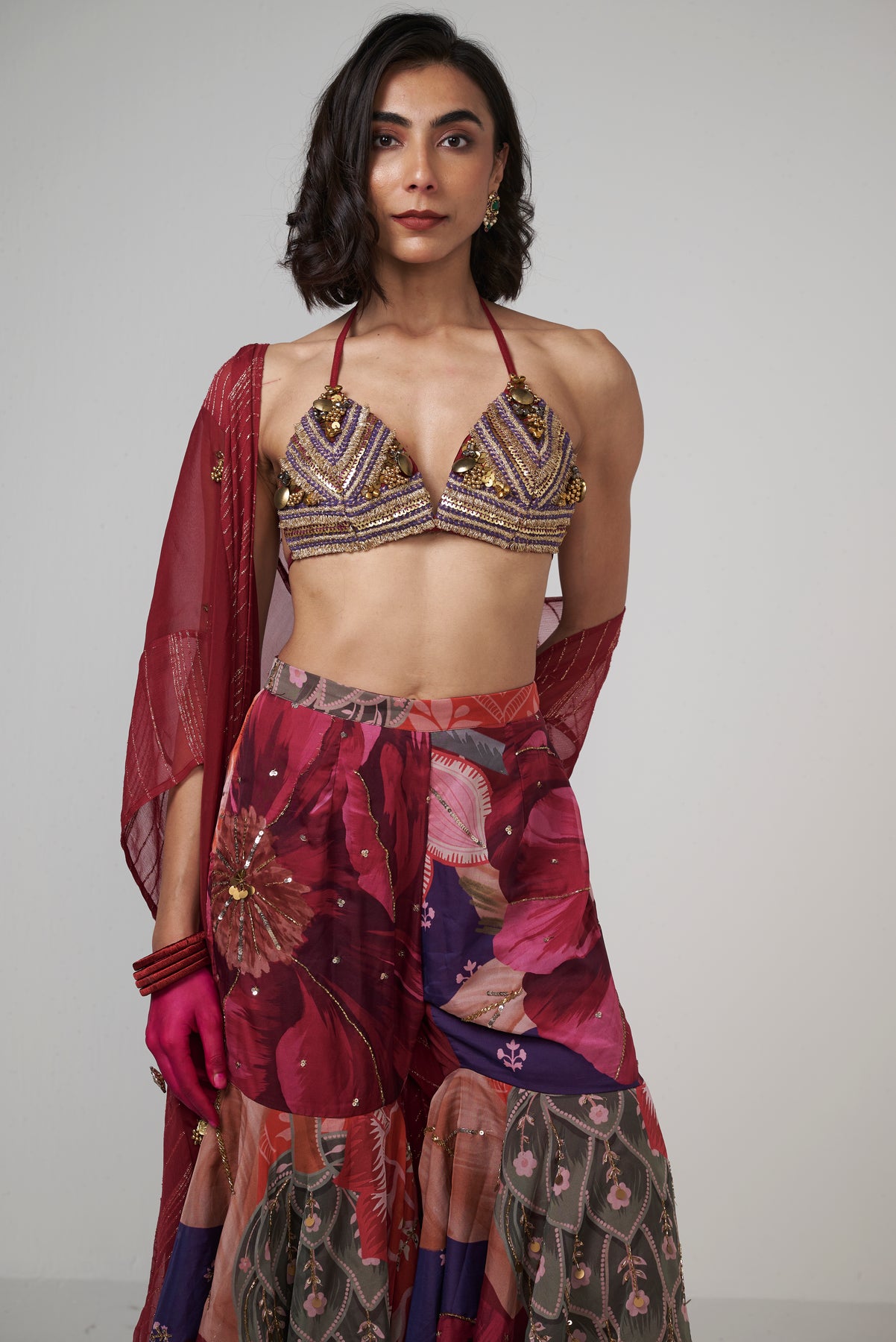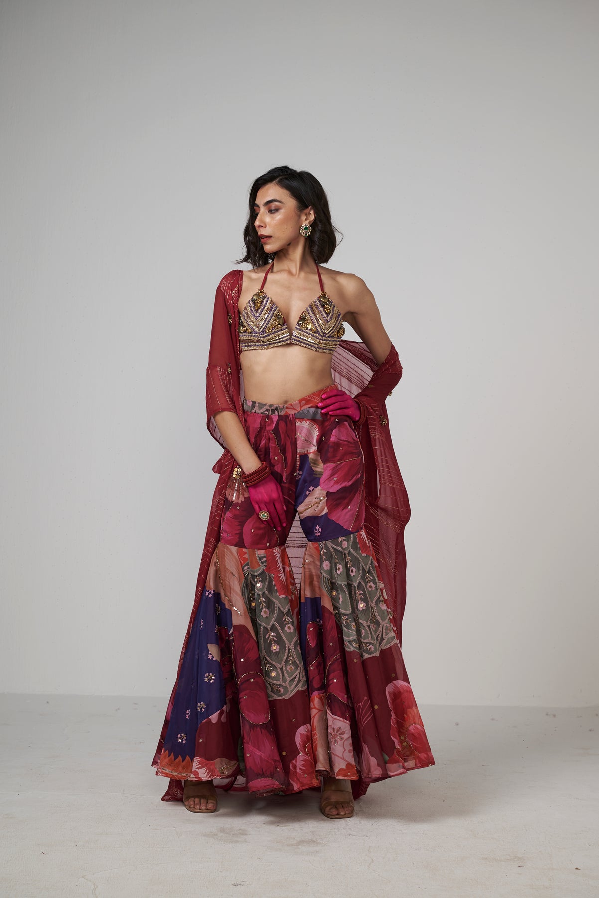 Design Elements: Intricate cutwork patching , Hand Embroidery, trim embellishments.