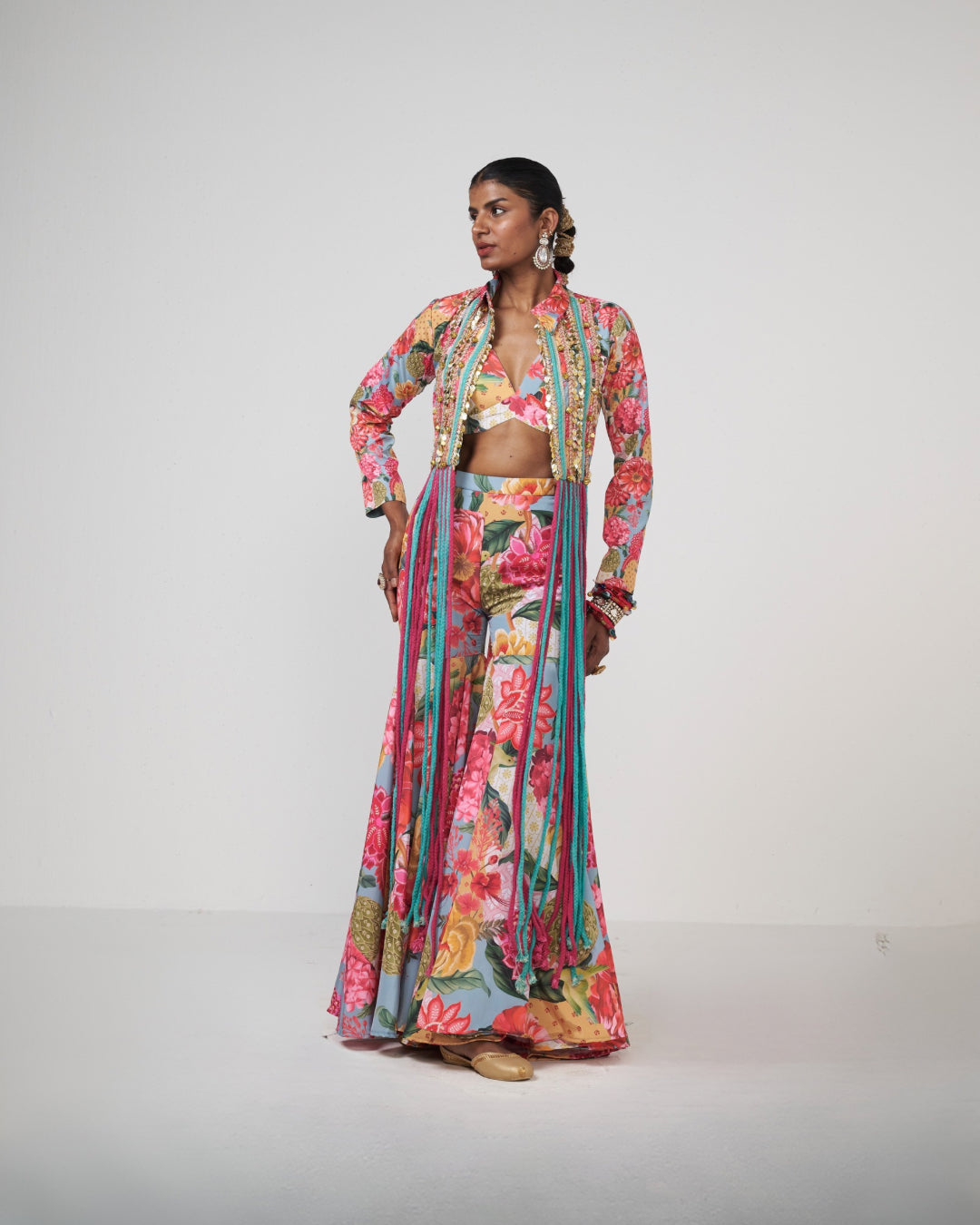 Design Elements : Applique Trims , sequins & coins & tassels Includes: Jacket & Pants