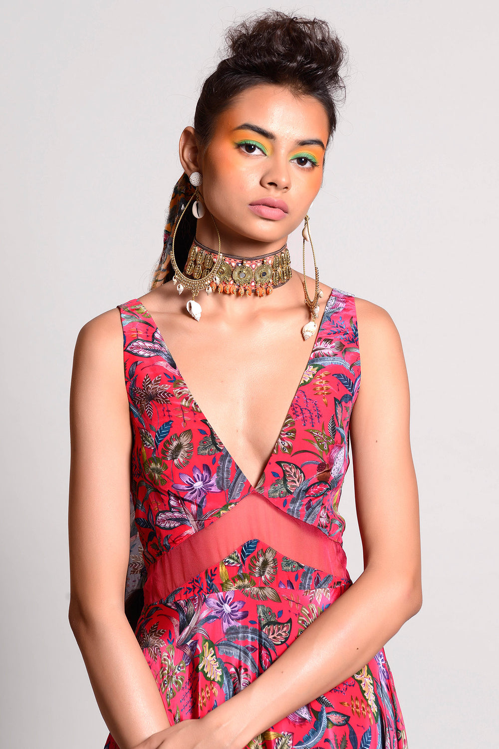 Rv'S V Neckline And Sheer Detail Long Dress Is Classic Combination In Addition Of Sheer Fabric
