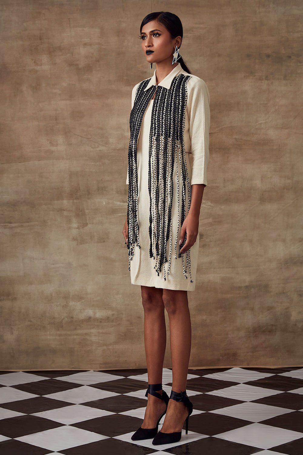 Featuring A Short Jacket Essembled With Intricate Workmanship With The Play Of Dories Paired With an organic cotton short dress