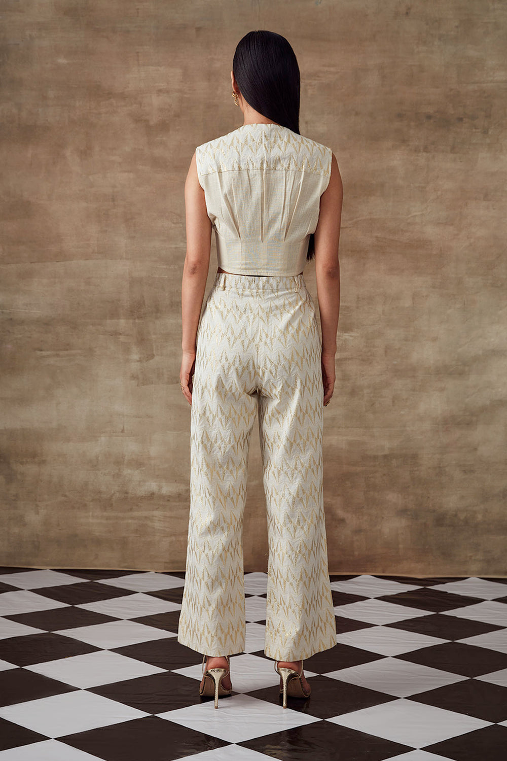 Featuring a beautifully fitted corset top with a jacquard & lurex detail & Coordinated formal pant